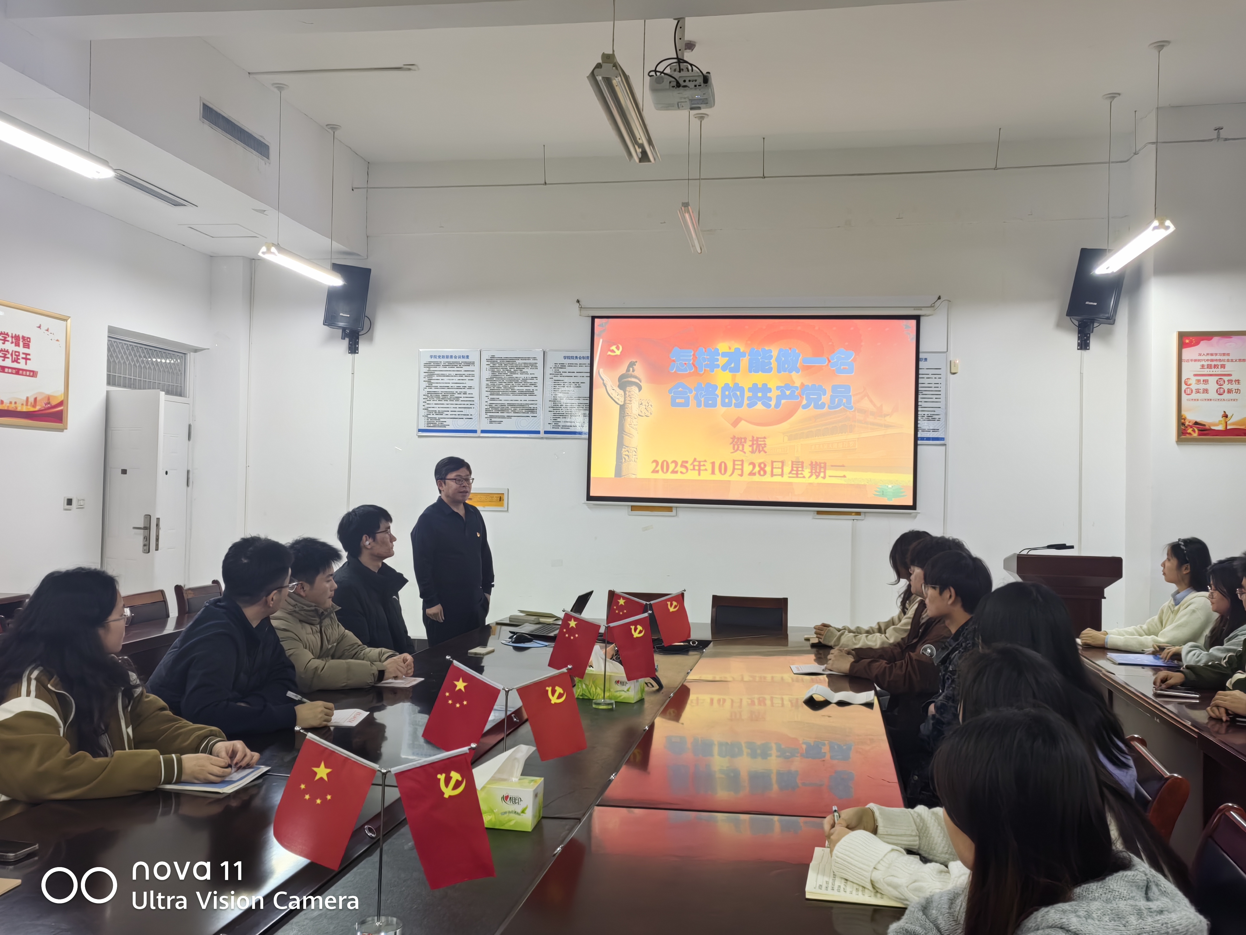 10月27日,学生第二党支部书记张瑞杰以《党员发展流程》为题讲授了党课。
