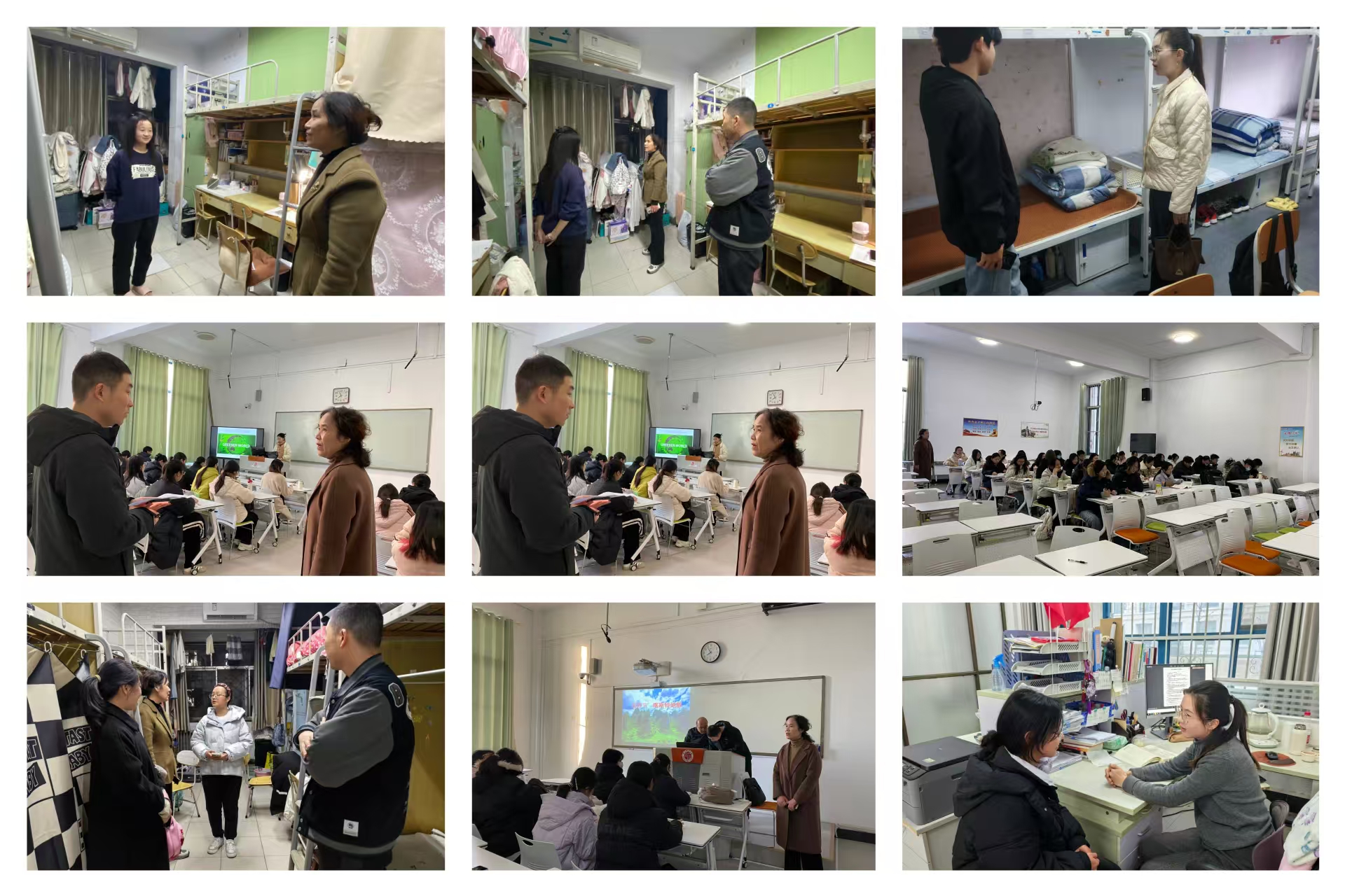 走访期间,学院党委副书记王丽带领各年级辅导员深入学生宿舍,与同学们面对面交流,关心学生的思想动态、考研就业规划及日常生活等,并对宿舍安全与卫生情况进行检查。老师们倾听学生心声,征求了对学院工作的意见建议。在三查环节,学工队伍深入各班级,开展上课情况检查、学情分析调查及班级学风督查工作。走访发现,学院学生普遍能提前到达教室并做好课前准备,课堂专注投入,师生互动积极,整体学风严谨有序。