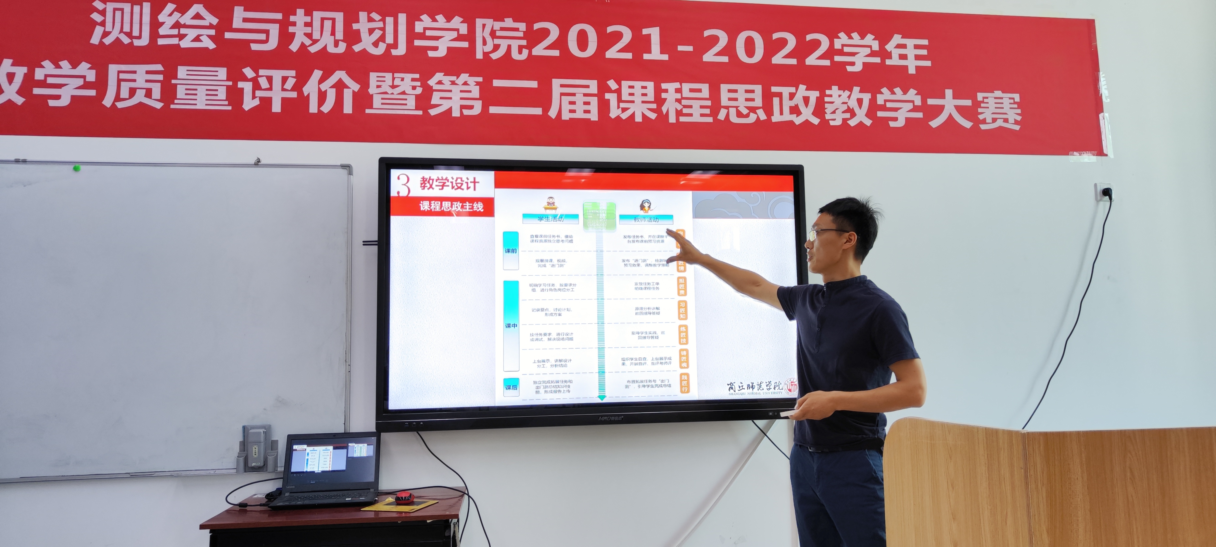 本次比赛分为两个环节进行,赛前所有参赛教师提交一节课(50分钟)的教学设计(教案),然后分别进行20分钟的现场教学,展示课堂教学融入思想政治教育的思路、方法和效果。各参赛教师赛前精心准备、授课思路清晰、教学内容引人入胜,巧妙地将专业知识与思政教育有机融合到一起,做到“润物细无声”,充分展示了我院教师课程思政水平。