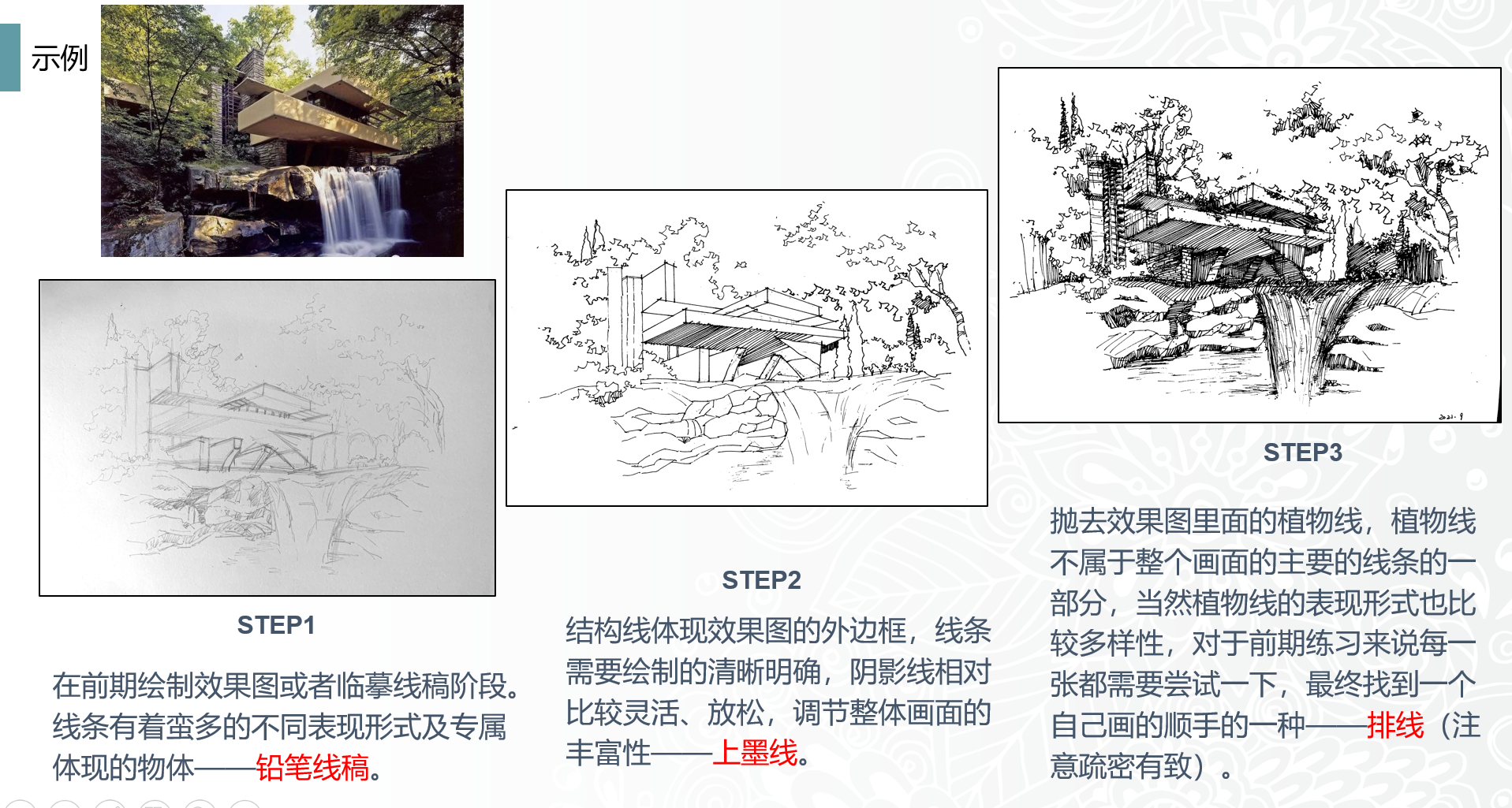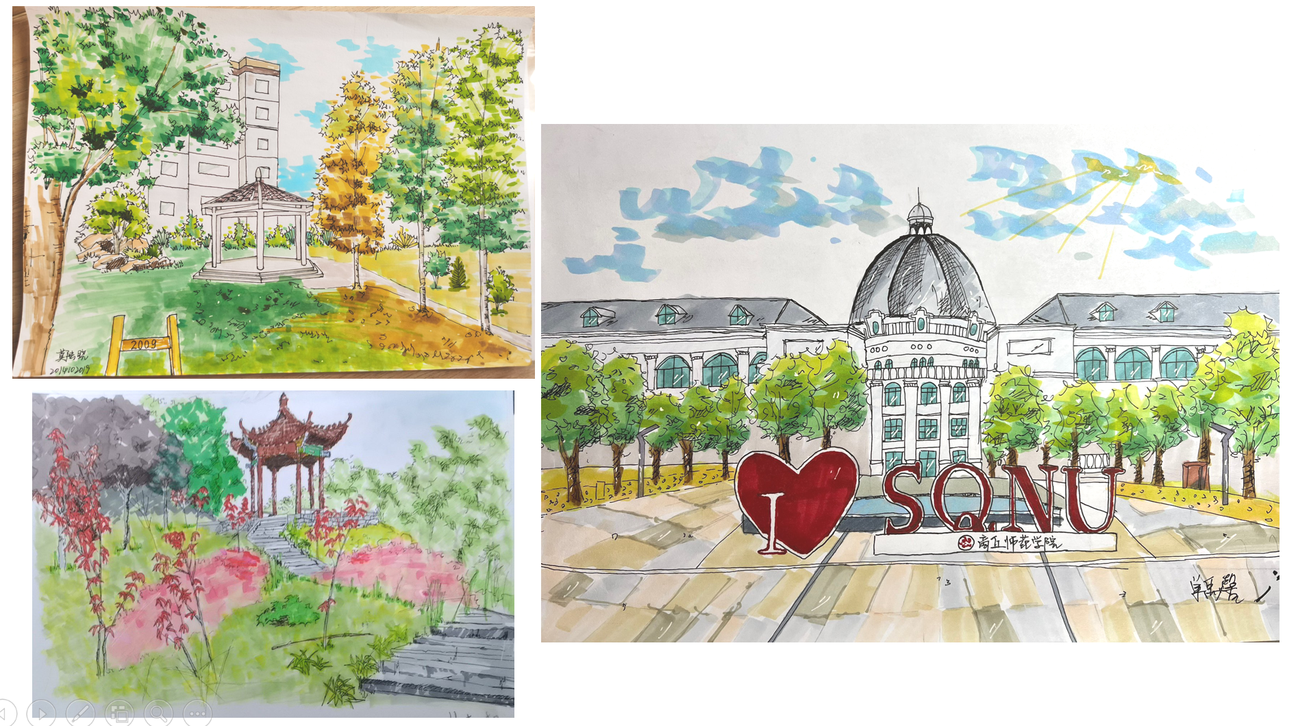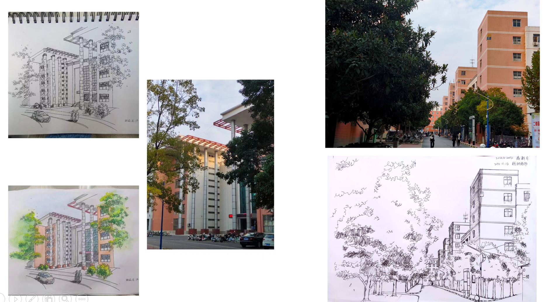 首先,姜书纳老师以城乡规划专业2021级《钢笔画》课程为例,从教学背景、教学设计、教学过程等方面进行分享。并以永利娱高校园风景写生为例,从“取景”、“构图”、“明暗关系处理”等分享了部分学生的钢笔画作品。从钢笔画写生“取”与“舍”角度展示了城规21部分学生的钢笔画作品,总结出在钢笔画写生过程中懂得取舍的重要性。同时分享自己钢笔画临摹作品,通过对比分析法让学生掌握在临摹中透视和布局的重要意义。